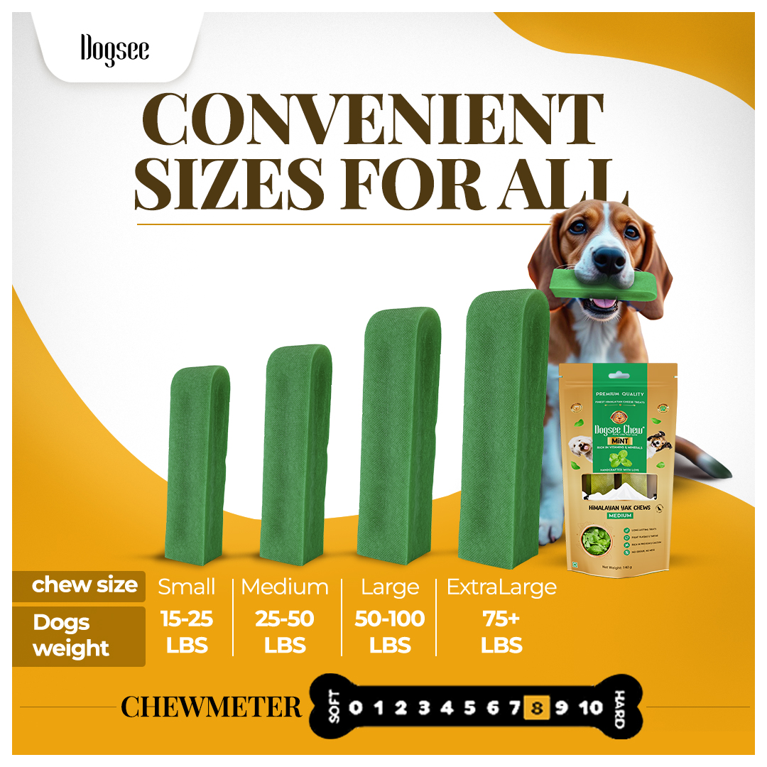 Give your dog the gift of taste, health, and lasting satisfaction with the Dogsee Mint Himalayan Yak Chews Medium Pack of 4, Medium Pack of 6. Made from centuries-old Himalayan recipes, these nutrient-rich treats are smoke-dried to perfection and enhanced with refreshing mint. Suitable for small to medium breeds, they naturally fight plaque, tartar, and odor while promoting fresh breath, strong teeth, and healthy gums. With long-lasting chewability and wholesome nutrition, these yak chews for dogs are the perfect balance of flavor, function, and fun.